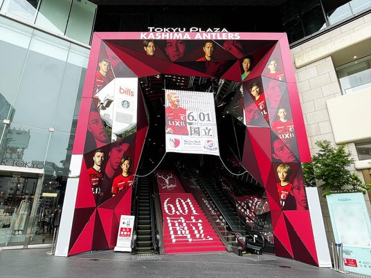 東京・原宿の神宮前交差点に面する東急プラザ表参道「オモカド」エントランスをアントラーズがジャックします!掲出は試合前日の5/31(金)まで。ぜひ、現地でご覧ください!