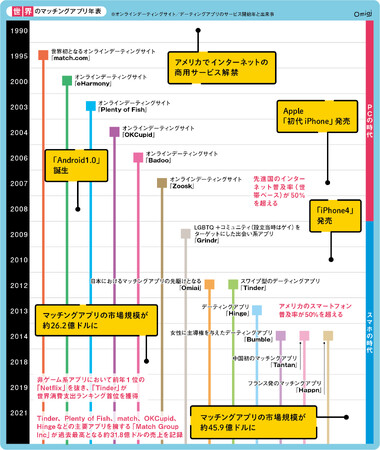 マッチングアプリの世界史と実態 アメリカで1995年に誕生。2022年には49.4億ドル市場に。