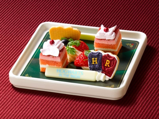 スタジオツアー東京初のクリスマスアフタヌーンティーが登場。スタンドはツリーをイメージしたデザインで、オーナメントやカラフルなデザートで飾り付けました。ハリーとロンが受け取ったプレゼントであるセーターのクッキーやブッシュ・ド・ノエルなど、クリスマスらしい色鮮やかなスイーツやセイボリーをお楽しみください。