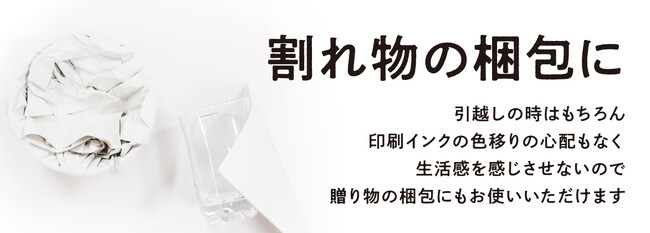 印刷インクの心配がなく、生活感を感じさせないため、陶器や贈り物の梱包の緩衝紙としても最適です。