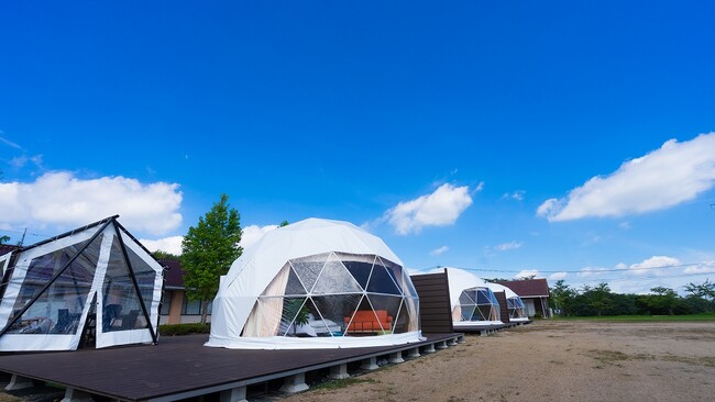 野球やサッカーができるほどの広大な土地を持ち、天然ラジウム温泉を保有するせら香遊ランドと、グランピング×ホテル・旅館の新しい掛け合わせのグランピング施設を運営する「glampark」がタイアップし生まれたドーム型のグランピング施設【glampark せら香遊ランド】