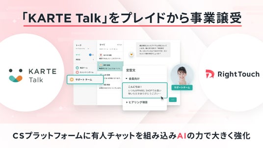 株式会社RightTouch(東京都港区、代表取締役 野村修平/長崎大都、以下「当社」)は、株式会社プレイド(東京都中央区:代表取締役CEO 倉橋健太、以下「プレイド」)が開発・提供するCX(顧客体験)プラットフォーム「KARTE」シリーズのプロダクトにおいてウェブチャット機能を担う「KARTE Talk」に関する事業譲渡契約を締結し、KARTE Talkの技術資産及び知的財産権を含む同事業を譲り受けることを決定いたしました。なお、現在「KARTE Talk」を契約する顧客企業との契約関係は本移管に含みません。