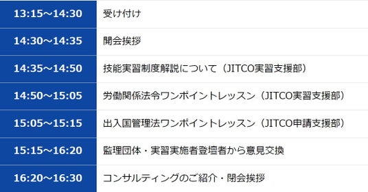 JITCOは、これらセミナーやコンサルティング事業を通じて、技能実習制度を利用する皆さまを全力で支援してまいります。