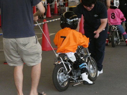 元オートバイレーサーの青木宣篤氏をはじめとするレーサーたちが、初めてバイクに乗る子どもたちにバイクの楽しさを直接伝えました。