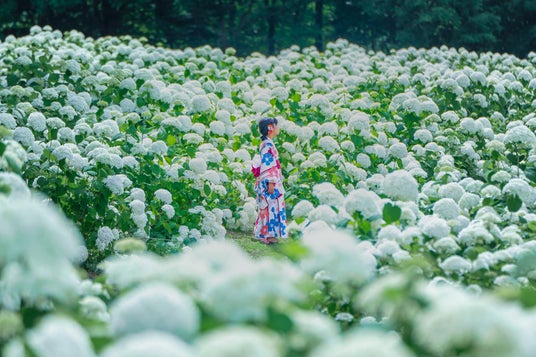 約2,000株のアナベルが咲き誇ります。木陰の道を進んだ先に現れる白い花畑は、まるで秘密の花園です。6月中旬から見ごろを迎えます。隠れたピンクのアナベルがあるので宝探し感覚で巡ってみてください。