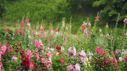 13品種3,500株のタチアオイが咲き並ぶエリアです。昨年より品種を増やし、植栽レイアウトを変更し、新しい景色に出会えます。