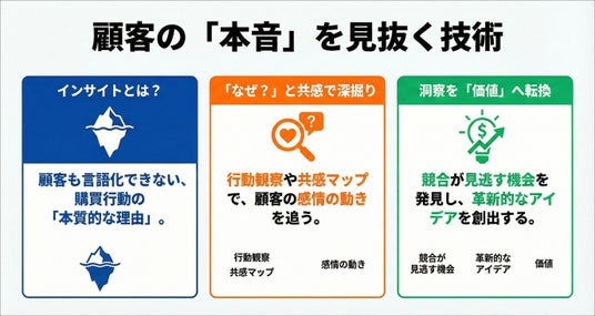- ニーズとインサイトの違いを整理し、顧客の本音を理解します。