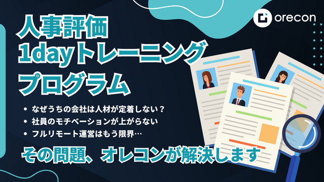 中小企業の経営をサポートするサービスを展開する株式会社オレコン(代表:山本琢磨)による「人事評価1Dayトレーニングプログラム」開催が決定いたしました。このプログラムでは、「人」にまつわる問題に対して、誰にも相談できずに、一人で悩んでいる中小企業経営者に向けて、スタッフ全員が自発的に仕事をし、成長する仕組みが入り、優秀な人材を採用する『人事評価制度』をお伝えします。