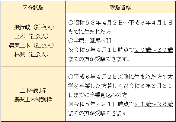 ※令和5年度県職員採用試験(大学卒業程度(社会人枠、土木系特別枠))を受験された方は受験することができません。
