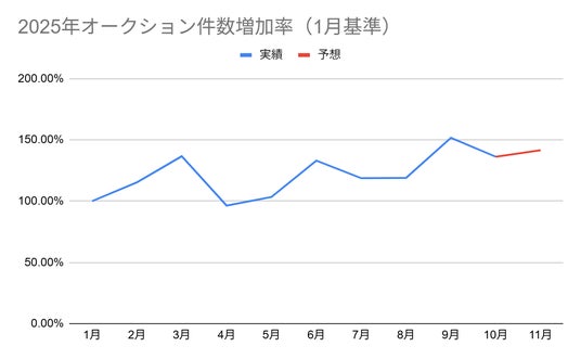 ※予想値はセルカオークション出品(2023年10月~11月、2024年10月~11月)をもとに算出 実績値はセルカオークション出品(2025年1月~10月)をもとに算出