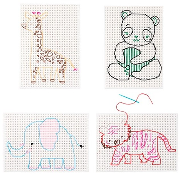 絵の上から好きな色の糸で縫っていくと・・・絵が!縫物練習にも◎
