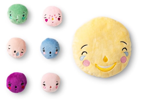 笑顔のぬいぐるみから、出てくる出てくる様々な顔・顔・顔!触って、並べて、自然と楽しみながら感情を理解できるアイテムです。