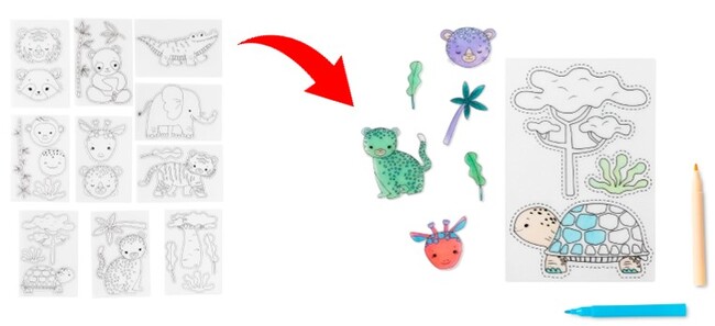 懐かしいが新しい!プラバンキット。塗り絵感覚で色を塗り、トースターで温めれば完成!