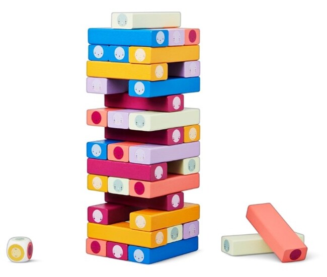 表情が描かれたサイコロを投げて、同じ顔のブロックを引き抜いてこう。毎回顔マネも◎