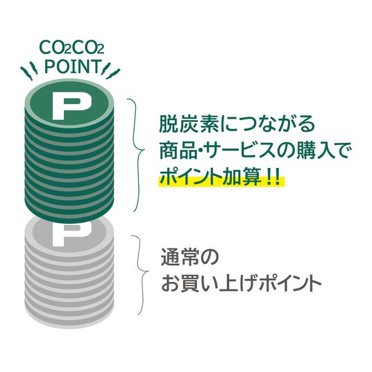 脱炭素につながる商品の購入等でポイントを上乗せ。デカボスコアでおトクだけではなく、環境への貢献度もわかりやすく提供し生活者の行動変容を促進。