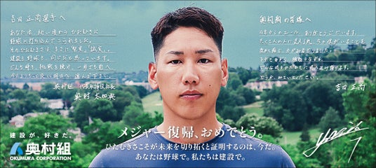 奥村組と吉田選手が互いに送ったメッセージを広告に