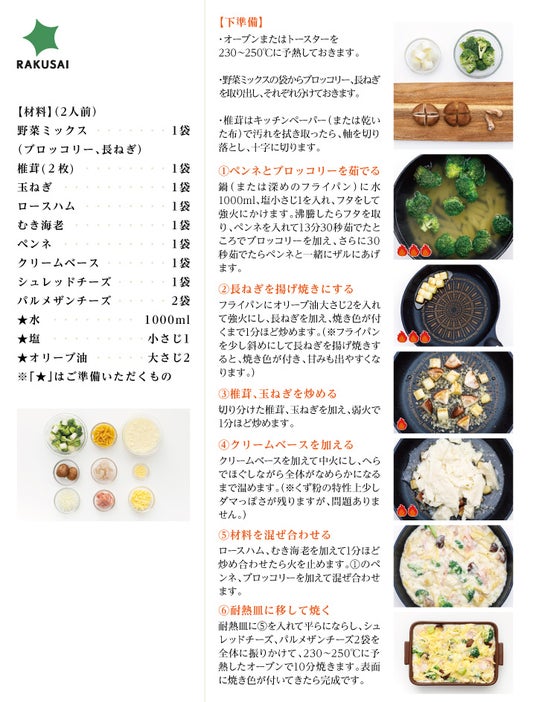 “ブロッコリーと椎茸の海老ペンネクリームグラタン”RAKUSAI 9/9新発売