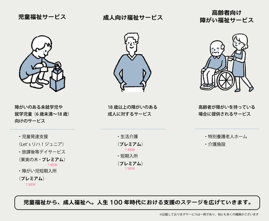 桜十字グループは、「WELL-BEING FRONTIER」というスローガンのもと、医療・介護を中心に、人と社会のウェルビーイングを高めるさまざまな取り組みを進めてきました。近年力を入れているのは、障がい福祉の分野です。障がい福祉分野には年齢や支援の内容によって様々なサービスがございます。私たち桜十字は、熊本県を中心に児童発達支援や放課後等デイサービスといった児童福祉事業を展開し、障がいのあるお子さまたちの成長を支援してまいりました。大人になるまでの時間は、長いようでいて実はとても短く、未来をかたちづくるかけがえのない時期です。私たちは、子どもたちとそのご家族が安心して楽しい日々を過ごし、「できないこと」ではなく「できること」が増える喜びを感じていただけるよう、日々支援に取り組んでいます。ただ、私たちの挑戦は児童福祉だけにはとどまりません。人生100年時代の“生きるを満たす”ため、次に目指したのは、より広い地域で、子どもから大人まで一貫してウェルビーイングを実現できる福祉の仕組みをつくること。今回、プレミアムグループの桜十字グループへの加入は、その大きな一歩となります。