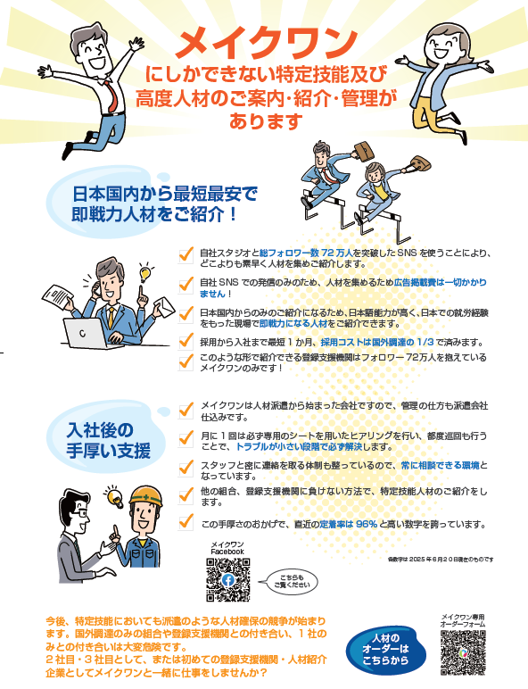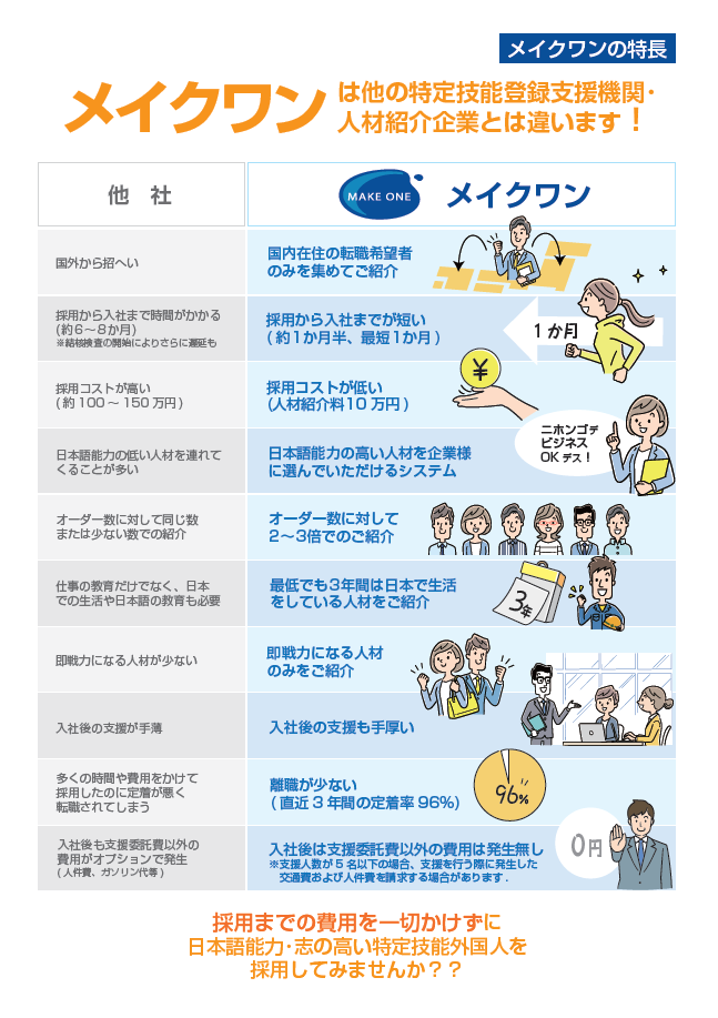 メイクワンがご提供する「国内即戦力」特定技能・技人国人材のご紹介