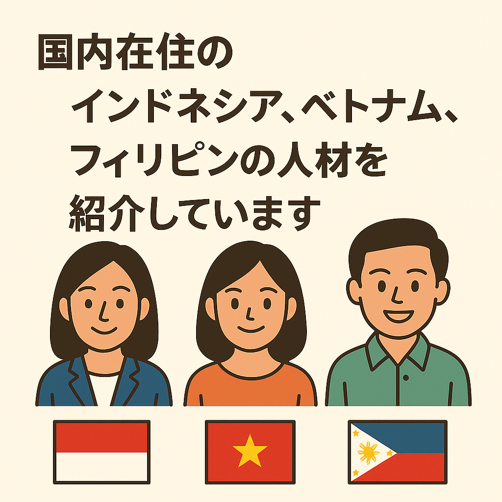 メイクワンでは、日本国内で活躍中の優秀な外国人材を中心に、インドネシア・ベトナム・フィリピンなど、各国出身の国内在住の人材を迅速かつ丁寧にご紹介しています。