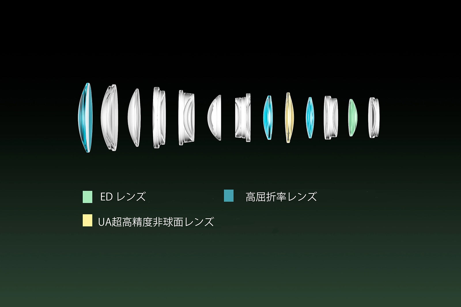 ・8群13枚構成(UA非球面×1、ED×1、高屈折率×3)による高解像・高コントラスト性能