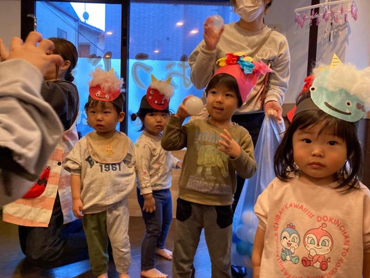 たじま絆保育園では、新聞紙で作った“豆”を活用し、安全に配慮した節分行事が実施されました。