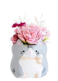 【母の日ギフト2026】直径約3cmのミニポットに枯れない花をアレンジ。新デザイン「エゾモモンガ」「ハムスター」「猫」を追加。