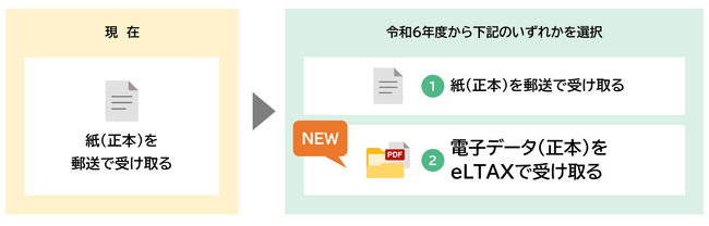 地方税共同機構より令和6年度から通知書の受取方法の選択肢が増え、電子データで受け取ることができるようになるとの発表が行われた。