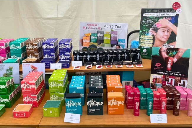 今回の出展では海洋汚染に心を痛めた当時大学生のブリアン・ウエストが2012年に設立した、NZ発固形バーブランド「エティーク(https://www.ps-intl.co.jp/brand/ethique)」を中心に、ヨガやビーチなどで使えるリサイクル繊維タオル「NOMADIX(ノマディクス)」、エコでありながらも実用的なバッグブランド「GOTBAG.(ゴットバッグ)」、天然素材のエコな使い捨てグリル「CASUSGRILL(カサスグリル)」、その他プラスチックフリーの泡立てネットやバンブー歯ブラシなどエシカミーオリジナルアイテムも販売します。