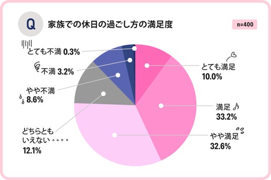 出典:家族での休日の過ごし方ランキング!理想の過ごし方は?休日の満足度は?パパママ400人にアンケート