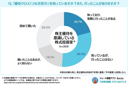 「知っており、実際に行ったことがある」と回答した人は20.7%にとどまり、大半の人が実施したことがないという結果になりました。また、「始めて聞いた」は30.5%、「聞いたことはあるが、よく知らない」は18.2%で、優待クロスについてよく理解していない人が48.8%と約半数に上っています。