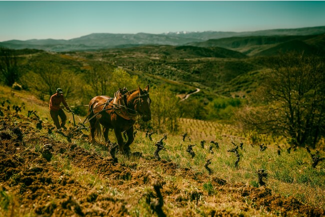 ラウルの哲学は、畑や品種などのルーツを重要視し、原点となるブドウ畑と土地への深い理解を常に追求し続けることにあります。栽培・醸造では「自然をリスペクトし、ブドウに与える影響を最小限にする』がモットーです。畑は馬を使って耕し、醸造では各区画の個性が発揮されるよう最低限のSO2のみを添加、オークのニュアンスがワインを覆わないよう新樽は使用しません。『欠陥のあるワインは失敗作だ』と語るラウルの作品は、正確性と透明感を兼ね備えています。そしてそれこそが「ラウル・ペレスは典型的なワイナリーではない。それぞれのヴィンテージが独自に変化するようにし、標準的でないワインをつくる」と各方面で言われる所以です。