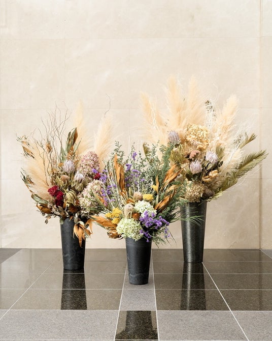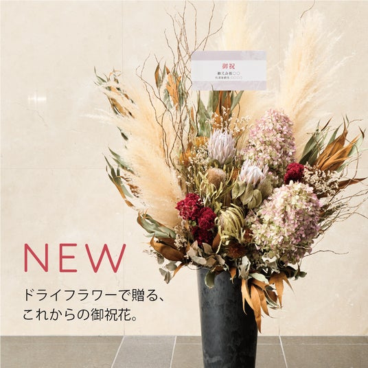 「企業様のこれからの時間に寄り添う、ドライフラワーの祝花|フローリストおまかせ」