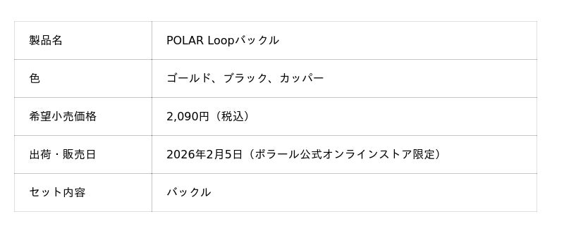 < POLAR Loop交換バックル製品概要>