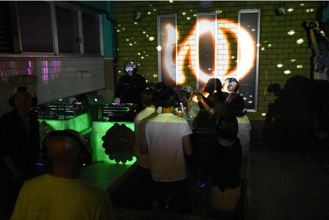 来場者には小さな受信機が配布され、それぞれ持参した有線ヘッドホンかイヤホンを挿すと、目の前でプレイする2人のDJのライブを、受信機でチャンネルを切り替えてお楽しみいただけます。
