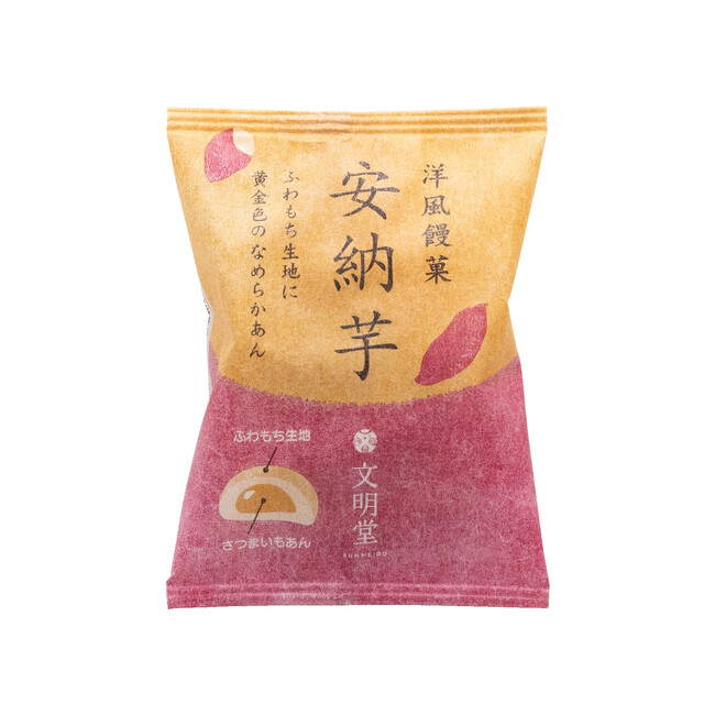 別名“蜜いも”とも呼ばれる「安納芋」を白生あんにたっぷり練り込んだ、濃厚な味わいのさつまいも餡は、黄金色に輝き、ふわもち生地との相性ばっちり。