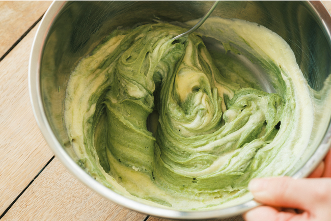 今回の煎茶クリームで使用する茶葉は全て、Creaimoと同じ岐阜美濃加茂を拠点に活動する「美濃加茂茶舗」のもの。4月~5月に収穫が始まる新茶の時期に合わせ、爽やかでほろ苦い味わいのクリームを目指しました。煎茶の渋みと香りに、ホワイトチョコレートのまろやかさを効かせた限定フレーバーをお楽しみください。美濃加茂茶舗のお茶が栽培される東白川村は、標高が高く、太陽光も強いため効率的に光合成が行われます。夜間に気温がぐっと冷え込むため、お茶は味も香りも豊かになります。 そんな茶葉を使った煎茶クリームは、鮮やかな色合い、爽やかな香りとほろ苦い味わいが特長です。尖った苦味がなく、清涼感のある甘みが特徴の煎茶を使った極上の一品を、ぜひご堪能ください。