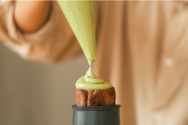 蜜芋ブリュレは、人気の壺芋ブリュレの味わいはそのままに、濃蜜なお芋とクリームブリュレが解凍なしで気軽に楽しめる、お芋スイーツです。解凍なしで召し上がるのはもちろん、お好みの食感に解凍をしてお楽しみいただけます。ひと口サイズで、ちょっとしたおやつにもぴったりな一品。全国のお客様にお楽しみいただけるよう、Creaimo公式販売サイトにて、蜜芋ブリュレの夏限定フレーバー「美濃加茂茶舗のほろ苦煎茶クリーム」を提供します。