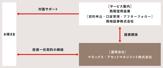マネックス・アセットマネジメント株式会社(本社:東京都港区、代表取締役社長:萬代克樹、以下「マネックス・アセットマネジメント」)は、2022年4月18日より投資一任運用サービス「ON COMPASS+」を、西尾信用金庫で取り扱い開始したことをお知らせします。西尾信用金庫ではお客さまへのサービス紹介を行い、資産運用契約のコンサルティングや契約後のアフターフォローは、西尾信用金庫が業務提携を行う岡地証券株式会社(以下、岡地証券)で行います。信用金庫と地域密着型の証券会社、運用会社の3社によるファンドラップの提供は、国内初*の取り組みとなります。