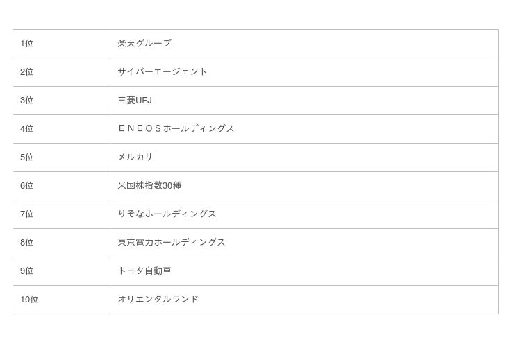 巣籠りゴールデンウィーク中、StockPointユーザーにおけるポイント運用銘柄人気ランキングでは、一般的に馴染みのある大企業の銘柄をはじめとして、「米国株指数30種ETF」といった金融商品にも人気があつまりました。