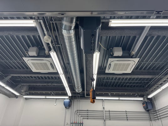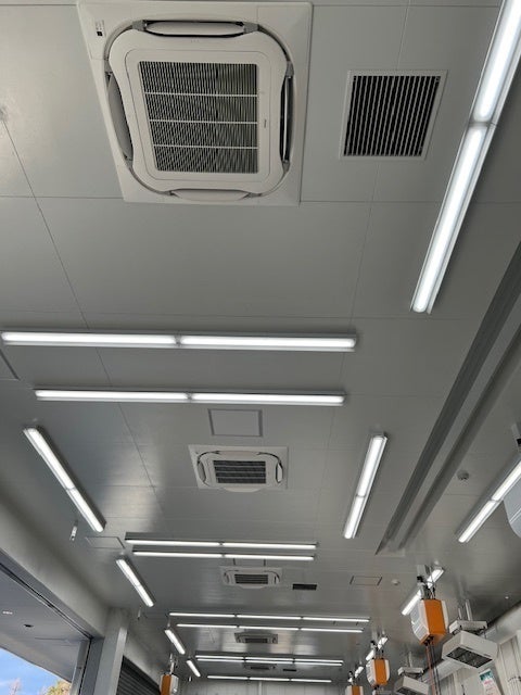 240平米の整備工場事例、空調8台設置し夏場の室温26度に