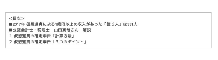 2017年度、331人が仮想通貨で1億円以上の資産を構築 仮想通貨を取り巻く法人会計や個人の確定申告におけるポイントなど