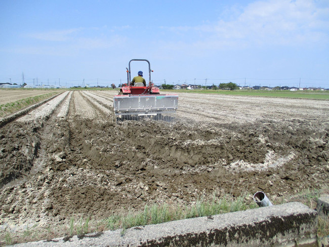 元々水田だったところに、今回ボナースを使ってトウモロコシを植えることが決まりました。「ゴールドラッシュ」という品種で、粒皮が柔らかく、さわやかな甘みで食味が良いのが特徴。