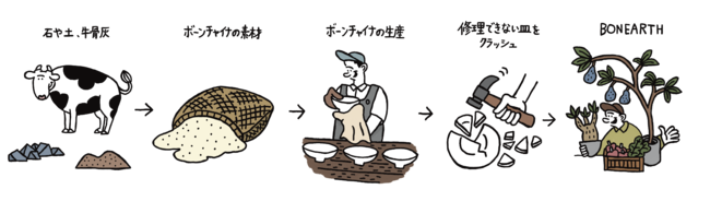 ボナースとは、世界初の食器をリサイクルした肥料のこと。NIKKO FINE BONE CHINAの原料に含まれる牛骨の灰に含まれるリン酸三カルシウムが肥料として有効なことから、その開発がスタートしました。NIKKOが肥料化してリサイクルする技術を確立し、約2年半の開発期間を経て、2022年3月遂に発売が実現したのです。
