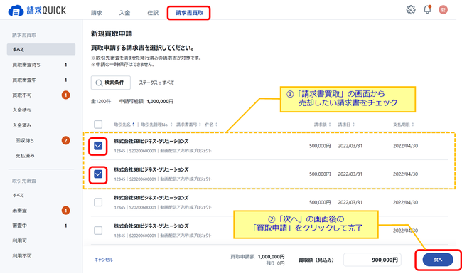 「請求QUICK」上からかんたん2ステップで請求書の買取申請が可能に