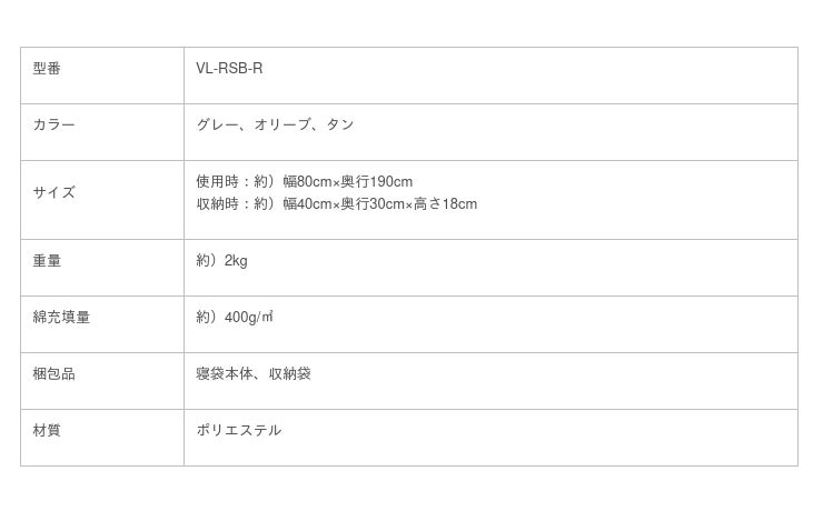 《「封筒型クッションシュラフ(快適温度6℃)」の基本情報》