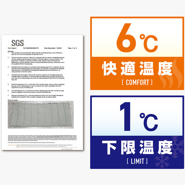 寝袋の国際規格「ISO23537(EN13537 ヨーロピアンノーム)」で保温力を確認済