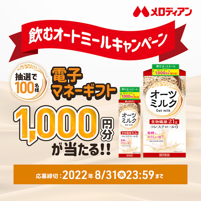 コーヒーミルクポーション最大手・メロディアン株式会社(本社:大阪府八尾市、代表取締役社長:中西優紀雄、以下、「当社」)は、食物繊維たっぷりで第3のミルクとしても話題のオーツミルクを、より広めるべく『飲むオートミールキャンペーン』を6月15日(水)より実施します。