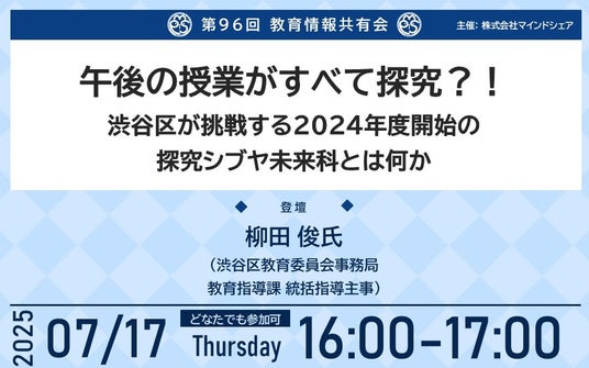 7月17日(木)16時~17時 どなたでも参加可能な無料オンラインセミナー 探究学習の時間を倍増、子どもの主体性と協働力を育む、渋谷区の新教育プログラムに迫ります