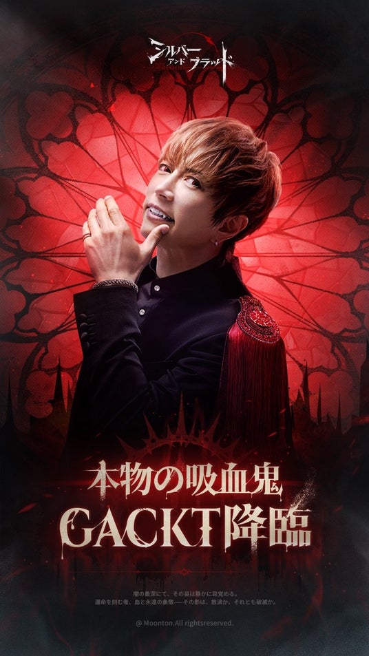 Moontonは、中世ゴシックヴァンパイアRPG『シルバー・アンド・ブラッド』(以下『シルブラ』)において、世界的アーティスト・GACKTさんが公式アンバサダー就任したことを発表しました。
